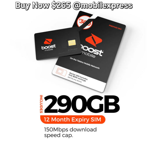 Buy Now:$249 Shipped @ http://www.mobilexpress.com.au Boost Mobile Prepaid SIM – 12-Month Plan (No Lock-In Contract) Plan Inclusions: 290GB Data on the Full Telstra 4G & 5G Network 12-Month Expiry –...
